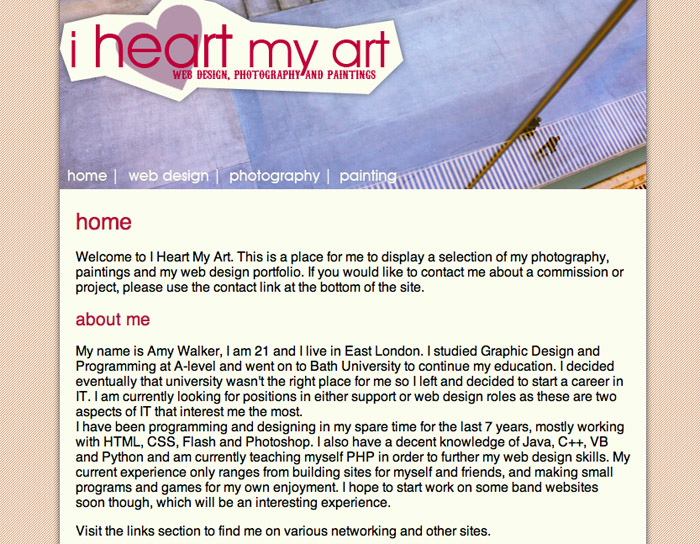 2009 - I heart my art main site. CSS and HTML coding with graphics.
