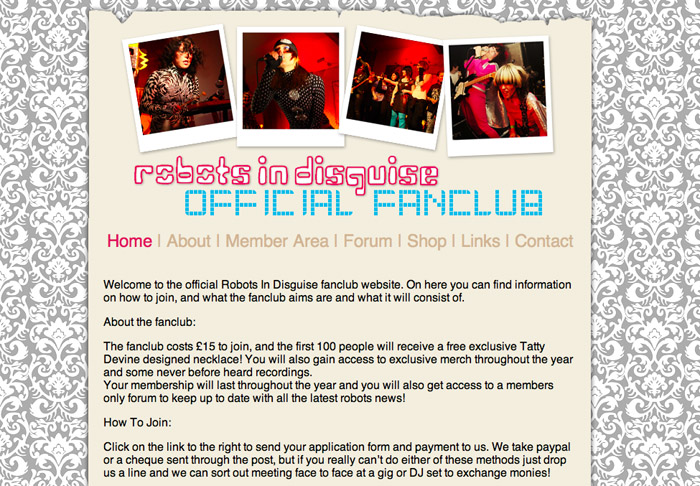 2008 - Robots In Disguise fanclub test site. CSS and HTML coding, with graphics and PHP and SQL-based login system.